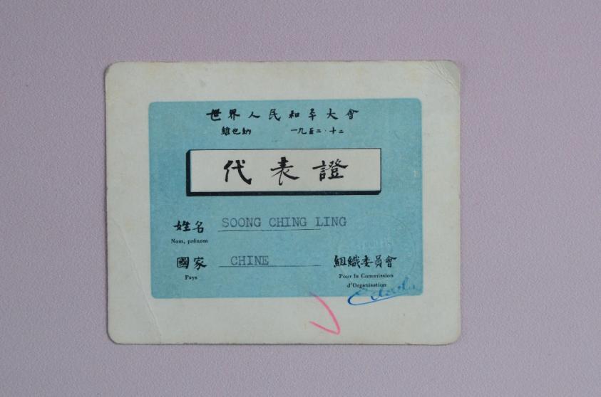 1952年宋慶齡出席世界人民和平大會(huì)的代表證