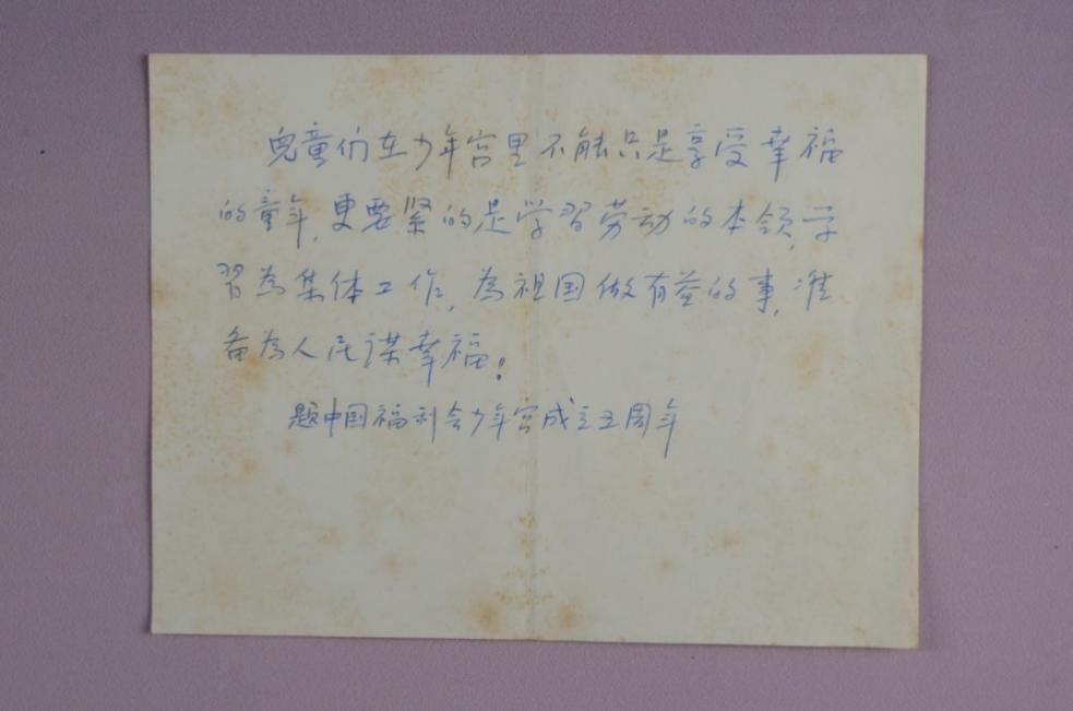 宋慶齡為中國福利會少年宮成立五周年題詞底稿