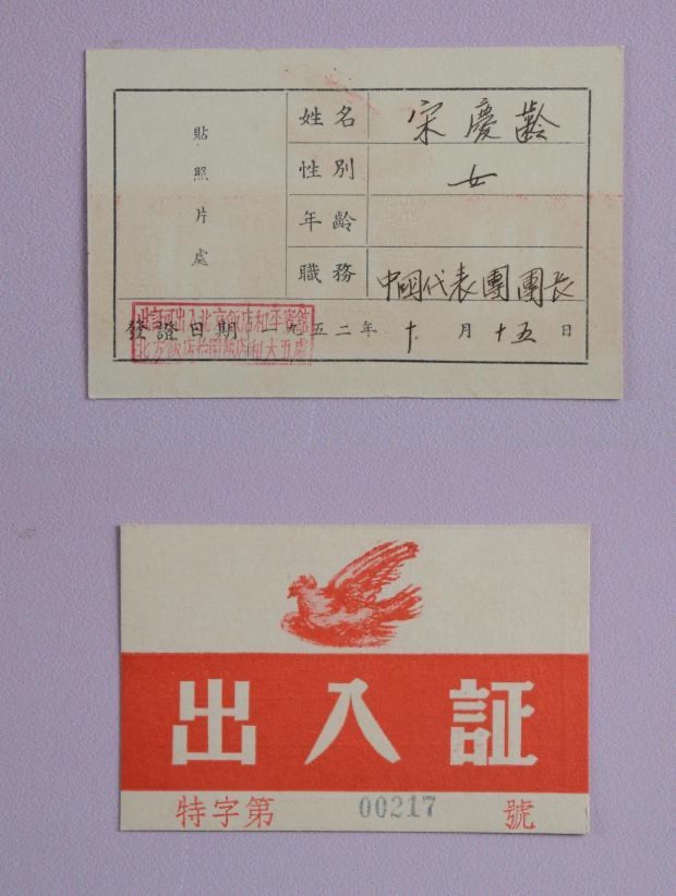1952年宋慶齡出席亞洲及太平洋區(qū)域和平會議的出入證