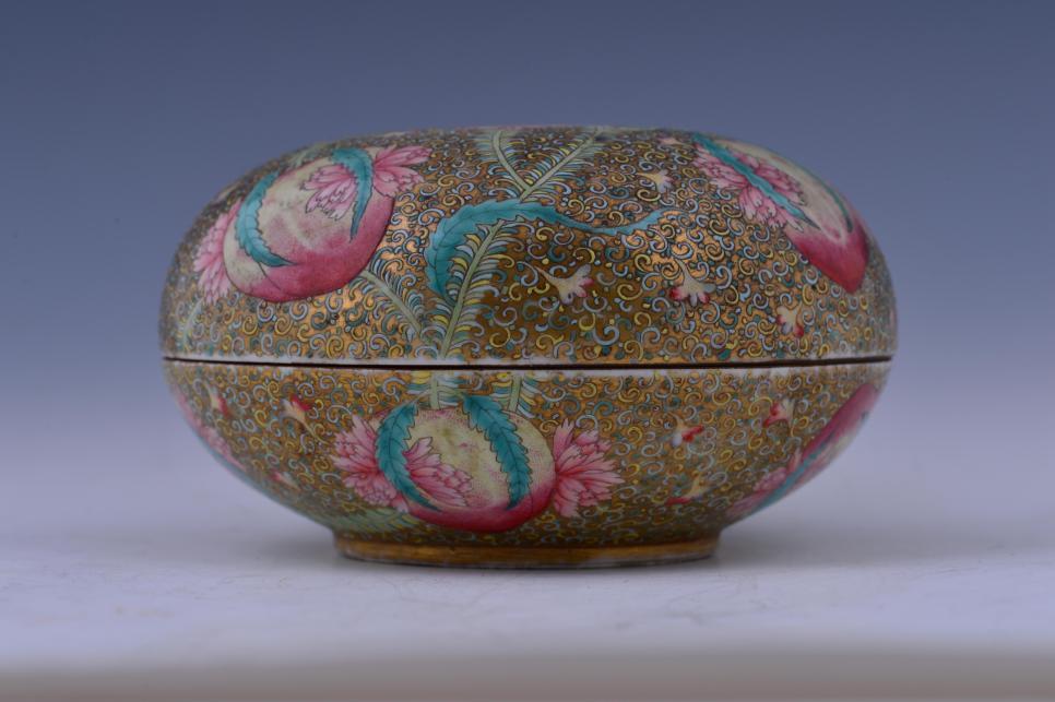 宋慶齡收藏的清金地粉彩纏枝桃果紋蓋盒