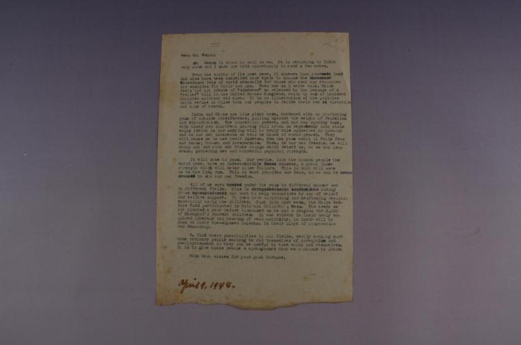 宋慶齡1948年4月1日致印度總理賈瓦哈拉爾·尼赫魯信底稿