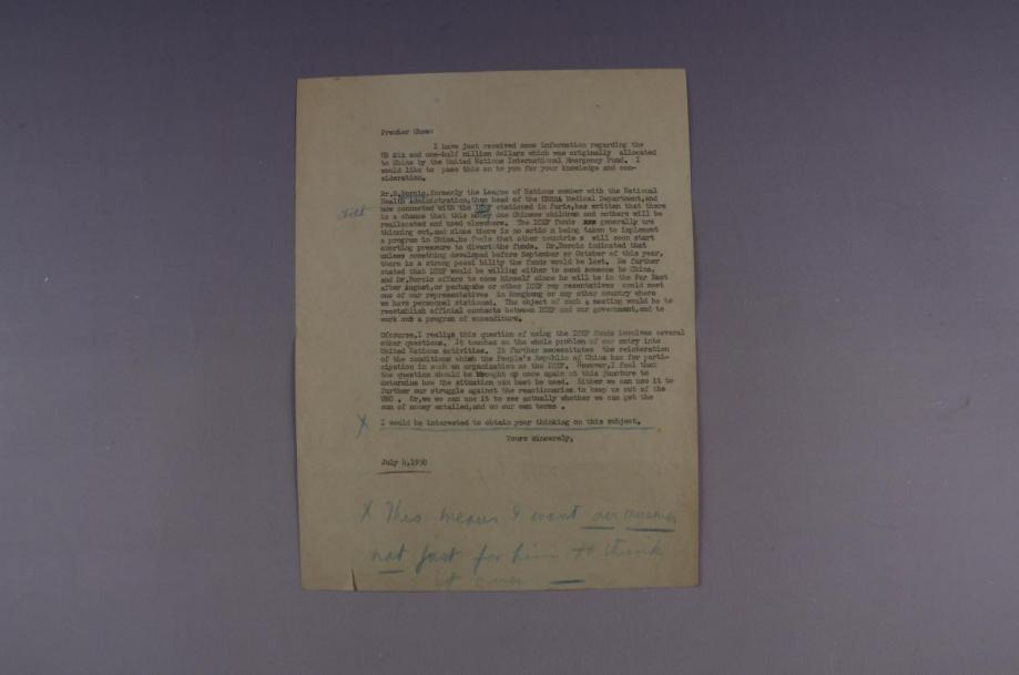 宋慶齡1950年7月4日致周恩來信底稿