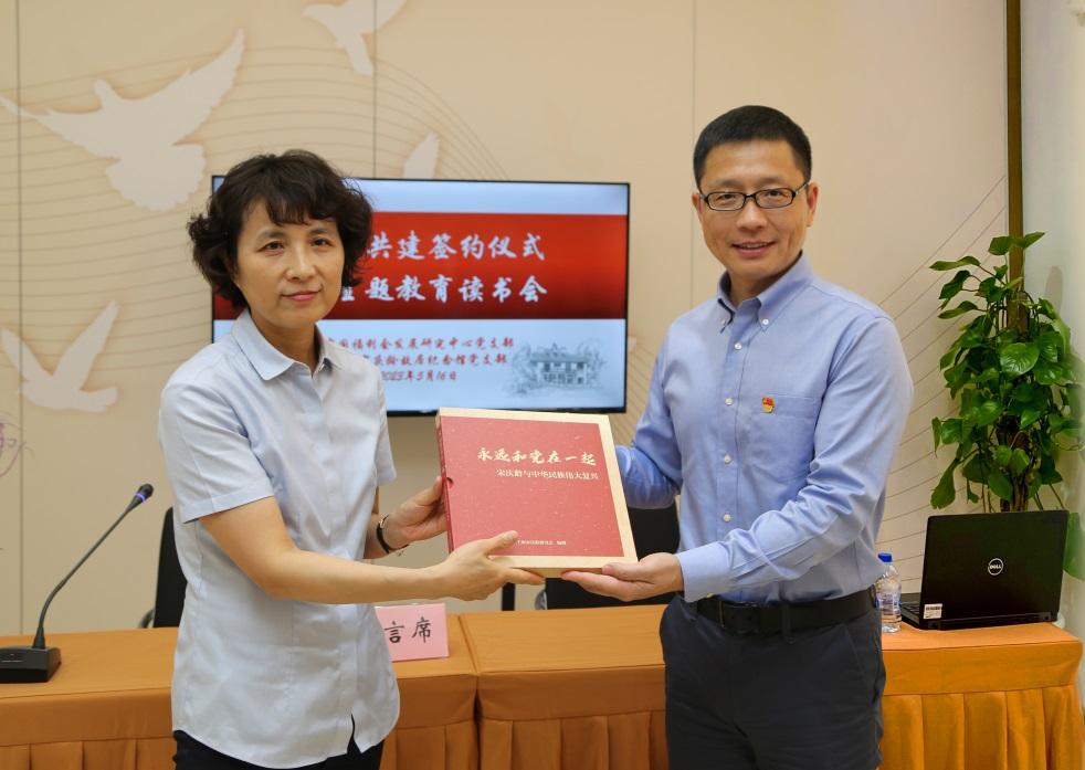 會上,共建雙方分別介紹黨支部的基本情況,圍繞宋慶齡研究、兒童教育發(fā)展等內(nèi)容,達(dá)成以黨建共建促進(jìn)各項業(yè)務(wù)融合發(fā)展的共識,簽訂共建協(xié)議并互贈了《永遠(yuǎn)和黨在一起——宋慶齡與中華民族的偉大復(fù)興》專題圖冊、花藝“風(fēng)范永存”等富含各自文化特色的學(xué)術(shù)研究成果和紀(jì)念品。作為同在宋慶齡的旗幟下,工作職責(zé)有交集的兩個支部,未來雙方將不定期開展黨建和業(yè)務(wù)工作的交流,共享資源,互補優(yōu)勢,進(jìn)一步繼承和發(fā)揚宋慶齡“永遠(yuǎn)和黨在一起”的堅定信念,在新時代新征程上攜手前進(jìn)、開創(chuàng)未來。