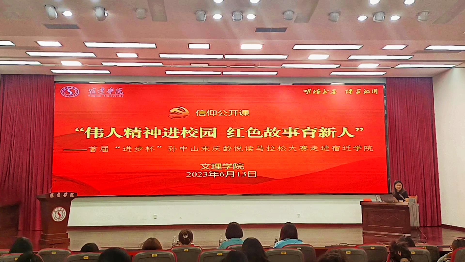 為深入學(xué)習(xí)宣傳黨的二十大精神,全面貫徹習(xí)近平新時代中國特色社會主義思想,用好紅色資源、賡續(xù)紅色血脈,進一步推動紅色場館與學(xué)校思政課改革的創(chuàng)新融合發(fā)展,切實推進“大思政課”建設(shè)走深走實,6月13至14日,首屆“進步杯”孫中山宋慶齡悅讀馬拉松大賽(簡稱“悅馬”)系列推廣活動走進宿遷學(xué)院文理學(xué)院。